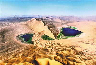 穿行在大漠之中,沙海蜿蜒,绵延不绝,而一个个湖泊犹如宝石和项链,壮美之余,也让人深刻感受到大自然的神奇和造化之玄妙。
