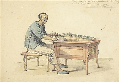 英国画家威廉·亚历山大关于中国人吃槟榔的画作。 资料图