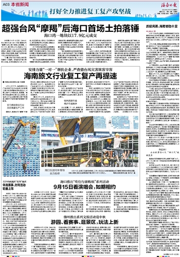海口市自然资源与规划局相关负责人表示,A0702地块的成功拍卖,是海口市在超强台风“摩羯”过境后,全力以赴推进复工复产的重要实践。