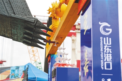 9月12日,山东港口青岛港司机远程操控挖掘机叠香槟塔。