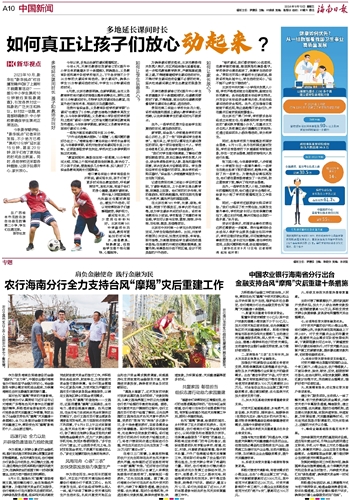 2023年10月,新华社“新华视点”栏目播发稿件《除了上厕所不能随意活动?——部分中小学生课间10分钟被约束现象调查》,引发各界对这一现象的广泛关注和热议。针对这一话题,教育部明确表示:中小学校要确保学生课间正常活动。今秋新学期伊始,“新华视点”记者采访发现,不少地方已将“课间10分钟”延长至15分钟,甚至20分钟,孩子们有了更充裕的时间走出教室。同时,各地学校还采取各种措施,让孩子玩得开心、家长放心。