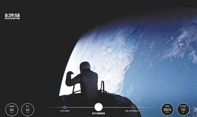 这张美国太空探索技术公司的视频截图,显示的是艾萨克曼出舱活动。新华社/美联