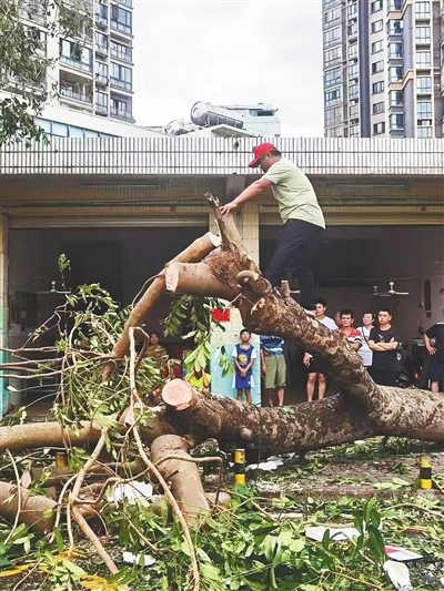 9月7日,台风过境后,滨江路段大量树木倒伏、倾斜,阻断了居民的出行之路,王福棠没有丝毫犹豫,果断与社区工作人员投入到道路清障工作中。倒伏在道路中间的树干太粗,需要用油锯才能锯断。当时,攀丹社区既没有油锯,也没有人会使用油锯。“油锯我家有,我也会使用。”此时,王福棠变身“万能选手”,拿着油锯就开始锯树枝。