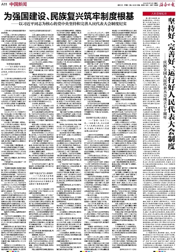 在习近平总书记关于坚持和完善人民代表大会制度的重要思想指引下,更好发挥人民代表大会制度在中国特色社会主义制度和国家治理体系中的重要作用,“中国之治”成色更足、效能更高。