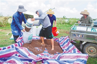 9月16日,文昌水北村,村民在装运鱼料。海南日报全媒体记者 袁琛 摄