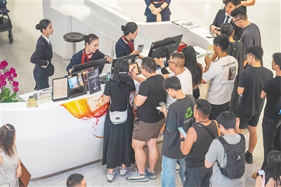 9月15日,不少游客走进cdf海口国际免税城选购免税商品。