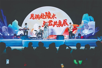 9月15日晚,陵水黎族自治县举办2024喜迎中秋市集活动。图为歌手在现场表演。