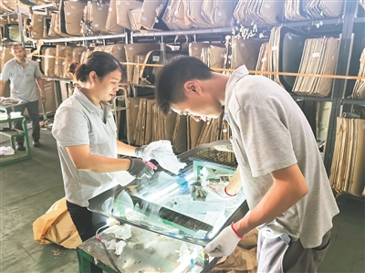 近日,信义玻璃工作人员在检查玻璃受损情况。海南日报全媒体记者 高懿 摄