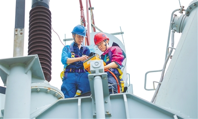 华能海口电厂专业人员正在抢修线路和设备。华能海口电厂供图