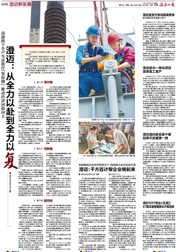 这句话背后,是澄迈县各大企业、园区昼夜抢修的场景。自9月7日起,澄迈各方力量加紧作业,力争早日“畅通”,为全县复工复产按下“加速键”,让企业又忙起来。