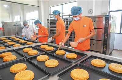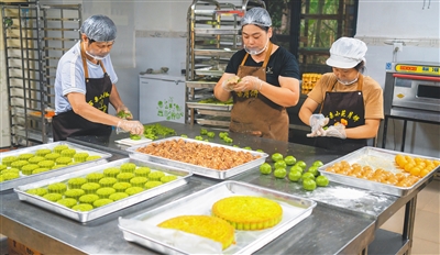 8月23日,在屯昌昌味之源食品有限公司的生产车间里,工人加紧制作月饼。海南日报全媒体记者 李天平 摄