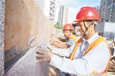 2 近日,在位于海口的海南农垦海云鞋厂宿舍区改造项目现场,工人在进行收尾施工。