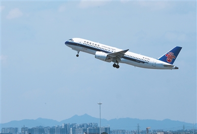 9月19日,机头标记着“C919”字样的中国南方航空公司CZ3539航班从广州白云国际机场起飞。新华社发