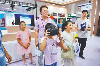 ② 9月22日,小朋友在第十四届数博会上体验雕版印刷VR。海南日报全媒体记者 张茂 摄