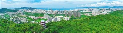 从三亚市临春岭森林公园远眺,三亚市城市风光绿意盎然。