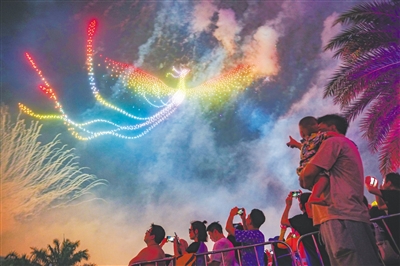 游客在三亚观赏灯光秀。