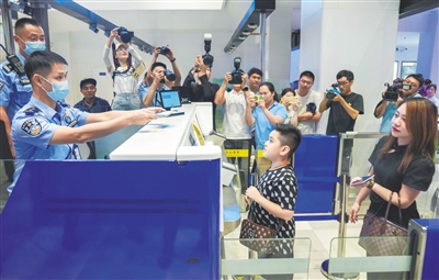 在三亚凤凰国际机场,凤凰出入境边防检查站为入境旅客高效办理通关手续。
