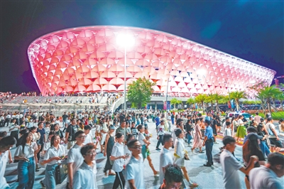 三亚抱坡国际体育中心白鹭体育场,众多市民游客观看演唱会。