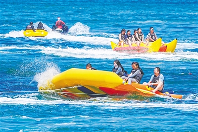 三亚蜈支洲岛,众多市民游客在体验水上项目。 本版图片均由海南日报全媒体记者 王程龙 摄