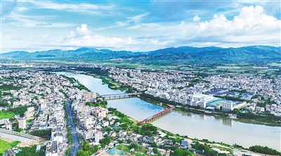 俯瞰三亚市崖州区,宁远河穿城而过。 海南日报全媒体记者 王程龙 摄