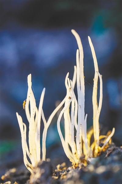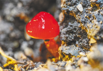 ② 生长在琼中黎母山热带雨林中的珊瑚菌。
