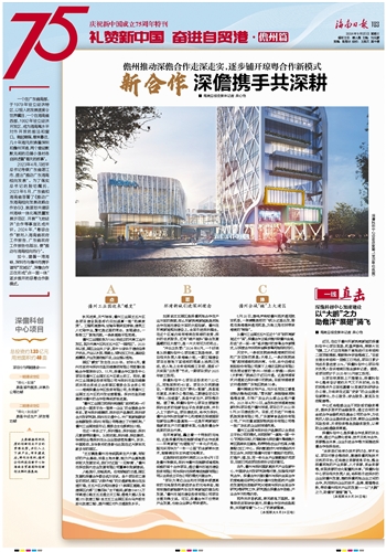 如今,隔着一湾海峡,深圳市与儋州市携手谱写“双城记”,深儋合作正在形成“点—面—体”逐步推开的琼粤合作新模式。