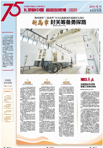 “经过多个政府部门和专业机构联合检验,由我们公司施工的洋浦港封关项目配套工程于9月20日顺利通过验收。”深圳市润柏建设股份有限公司洋浦港封关项目配套工程项目经理助理周官禄说,项目于今年2月初开工,9月13日完工。