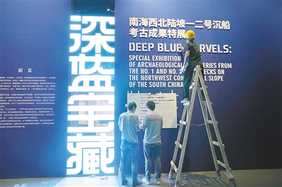 9月24日,在中国(海南)南海博物馆,工作人员在进行“深蓝宝藏——南海西北陆坡一二号沉船考古成果特展”布展。海南日报全媒体记者 张茂 摄