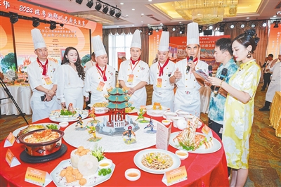 白切文昌鸡、文火煮白莲鹅……活动现场特设百道海南菜成果展示区,一道道美食成为与会嘉宾关注的焦点。现场还设立国际美食菜品展,邀请国际品牌酒店大厨利用海南食材烹制中西结合的融合菜品,为来宾们带来了全新的美食体验。