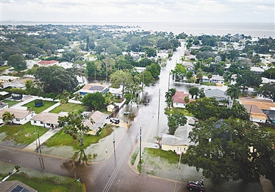 9月26日,受飓风“海伦妮”影响,美国佛罗里达州海滨地区部分道路出现积水。新华社/美联