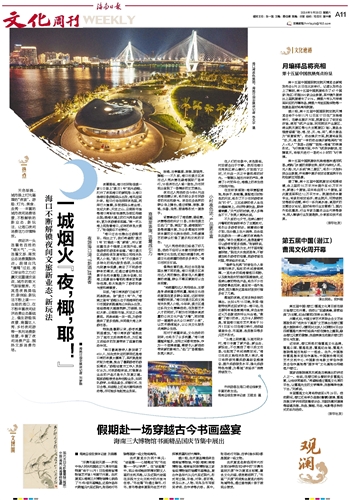 椰城的夜晚,还有多种多样的演出。比如9月15日晚,坎耶·维斯特世界巡回试听会-海口站,在五源河体育场激情开演,来自全球近4万名歌迷欢呼尖叫合唱,“掀翻”了海口的夜。尤为令人期待的是,首届海口城市艺术周将于10月1日至10日在海口举行,活动涵盖音乐会、书画展、各类剧目等多元艺术形式。