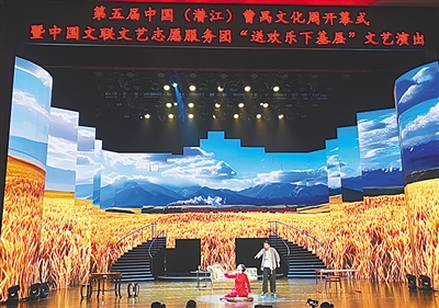 第五届中国(潜江)曹禺文化周日前在湖北省潜江市开幕。活动以“回望高峰,致敬经典”为主题,纪念《雷雨》发表90周年。开幕式后,中国文学艺术界联合会文艺志愿服务团“送欢乐下基层”文艺演出在潜江曹禺大剧院举行。《雷雨》《北京人》《原野》《日出》四部曹禺代表作的经典片段在舞台上重现,融合潜江元素的歌舞、戏曲表演生动展示潜江的变化与发展。