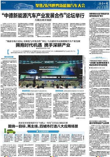 本报海口9月28日讯 (海南日报全媒体记者邵长春 通讯员林景岳)9月28日,2024世界新能源汽车大会“海南专场主论坛:全球化与开放合作”上,《海南省智能网联汽车“车路云一体化”应用试点建设方案》(以下简称《方案》)发布,提出海南将以智能网联汽车“车路云一体化”应用试点、智能网联汽车准入和上路通行试点为抓手,推动全省智能网联汽车创新发展。据介绍,发展智能网联汽车是全球汽车产业转型升级的战略方向,也是我国从汽车大国迈向汽车强国的重要途径。海南发展智能网联汽车优势明显,今年6月,儋州获批成为国家唯一的货车类智能网联汽车准入和上路通行试点,7月,海口、三亚、琼海联合体获批国家智能网联汽车“车路云一体化”应用试点,备受关注。