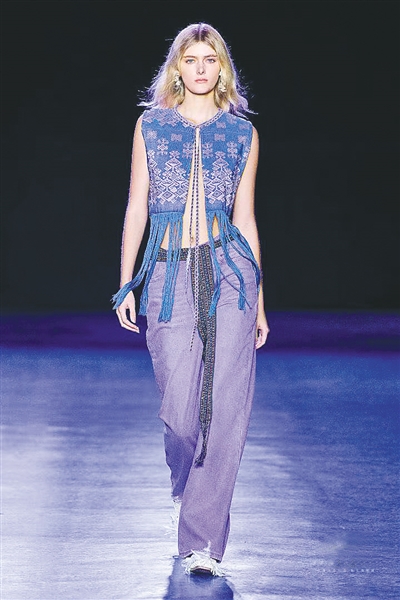 秀场上,美国知名女演员、模特Paris Jackson身着以大力神形象为主题的服饰登场,随后中国励志模特陆仙人身着带有黎族美孚方言地区黎锦元素的服饰缓缓步入T台,踏着历史的回响,散发着文化的韵味。非遗黎锦繁复的图案在灯光照耀下仿佛与历史对话,诉说着黎族同胞对自然的敬畏、对生活的热爱以及对未来的憧憬。这一刻,海南黎锦“千帆过海”闪耀巴黎时装周,获得中外观众赞誉。