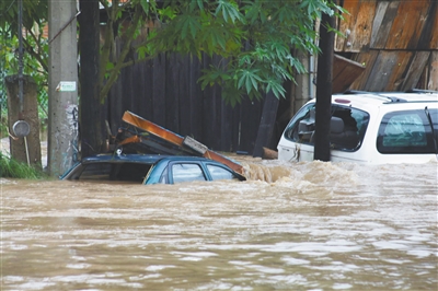 图为在墨西哥格雷罗州奇尔潘辛戈,车辆被洪水浸泡。新华社/路透