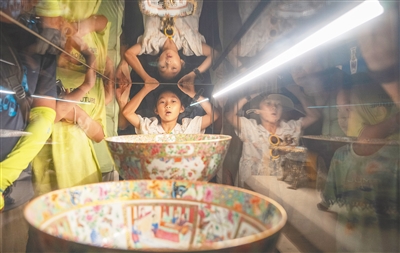 在中国(海南)南海博物馆,一位小朋友在欣赏瓷器。