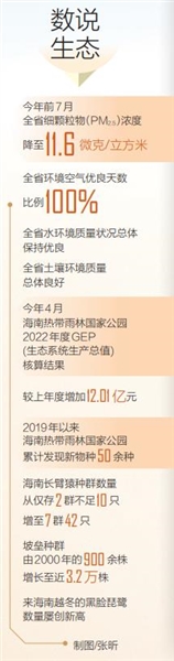 从看得见的新物种,到看不见的好空气,再到点“绿”成“金”的碳汇林,一幅幅灵动的生态图景,不断强调也反复印证着一个重要事实:良好的生态环境是海南最强优势和最大本钱。