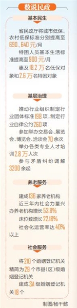 近年来,省民政厅立足促进全体人民共同富裕,兜住、兜准、兜牢民生底线。省民政厅将城市低保、农村低保标准分别提高至690元、640元/月,特困人员基本生活标准提高至900元/月,惠及18.2万名低保对象和2.6万名特困对象。