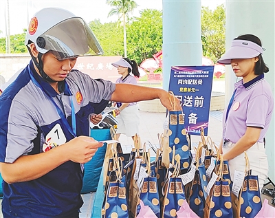 8月28日,海南网约配送员首次参加省级技能大赛。图为参赛选手在取件。
