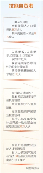 ■ 海南日报全媒体记者 易宗平 通讯员 蒙思奋这是一组可圈可点的数据:截至9月底,海南全省技能人才总量已达81万余人,其中高技能人才达12万余人。