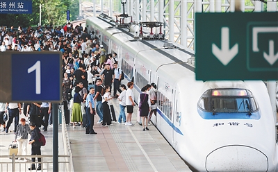9月29日,旅客在江苏扬州火车站站台乘车出行。新华社发