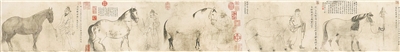 李公麟的白描作品,最著名的当数《五马图》。这幅画描绘了五位不同身份的人物骑乘马匹的场景,通过细腻的线条刻画,展现了人物的性格特点和社会地位。画中的线条流畅自然,既有力度又不失灵动,充分体现了李公麟对线条控制的高超技艺。《五马图》不仅在艺术上取得了巨大成功,更在文化层面上反映了宋代社会的风俗习惯和价值观念。