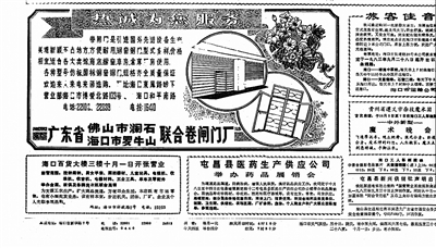 1983年9月30日,《海南日报》第二版刊发了一则条块广告,标题是《海口百货大楼三楼十月一日开张营业》,上面注明三楼经营范围包括挂钟闹钟、男女手表、照相器材、儿童玩具、电视机、收音机等。当时,位于海口解放路的海口百货大楼是海南最知名的商场,其商品种类在一定程度上折射出购物潮流的变化。