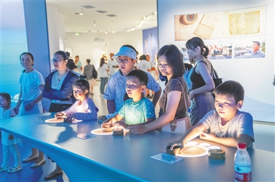 10月1日,不少市民游客带着孩子参观海南省非物质文化遗产展示中心。该展示中心于9月30日试运行,是市民游客获取优质公共文化资源的重要平台,将推出丰富多彩的文化艺术和非遗展演展示等活动,让观众沉浸式感受非遗独特魅力。