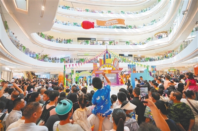 10月1日,国庆假期首日,三亚大悦城正式开门营业,吸引众多市民游客前来购物打卡畅玩。