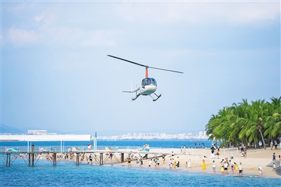 10月4日,游客在三亚西岛上乘坐直升机游玩。海南日报全媒体记者 李天平 摄