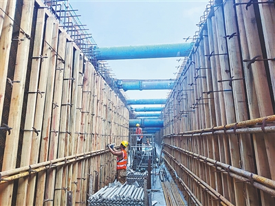 “国庆假期,项目建设不停工、不断档,大家都奋战在项目建设一线,以实干求实效拼实绩。”海文南路市政化改造工程项目相关负责人表示,项目分两期建设,一期工程为南段综合管廊和椰海大道以北段污水管道,分别满足美兰机场二期及桂林洋片区的供电需求,解决综合服务组团的排污问题,目前一期主体结构已完成。作为衔接美兰机场临空经济区及中心城区的重要通道,项目建成后将进一步完善海口江东新区主干道路网结构,同时优化城市地下管网建设,提升城市居住环境。