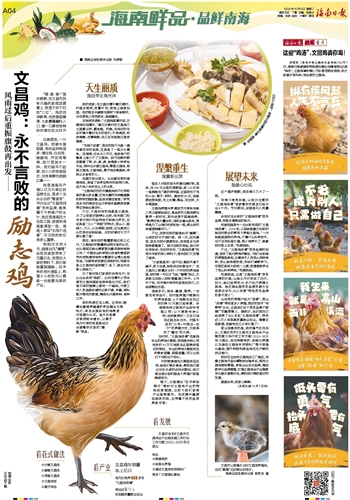 更让我激动的是,我的福气还在后头:文昌印发的《文昌市文昌鸡全产业链发展三年行动工作方案(2023-2025年)》提出,将在种源保护、标准化养殖以及建设文昌鸡专用饲料厂等方面强化基础,提升种苗和商品鸡在生产端的供应能力。