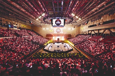 十月三日,观众在世界乒乓球职业大联盟(WTT)中国大满贯赛事现场观赛。新华社发