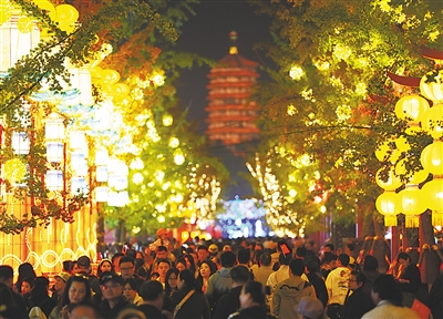 这个假期,各地通过丰富的文旅活动激活“夜经济”——北京园博园200多个大型创意灯组将园区装扮一新,京剧、秦腔等经典剧目热闹上演;夜幕下的哈尔滨灯火璀璨,一艘艘用灯饰亮化的帆船排列整齐,在松花江上为游客带来光影秀和彩帆表演;在青海西宁丹噶尔古城,夜间游览、舞台演绎、民俗体验等活动,营造出浓厚节日氛围……